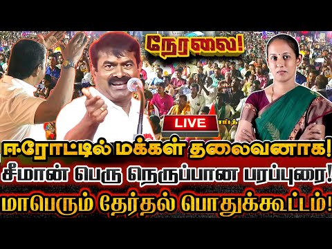 🔴[LIVE] நேரலை சீமான் ஈரோட்டில் அதிரடி பரப்புரை மாபெரும் பொதுக்கூட்டம்! Seeman Erode Speech